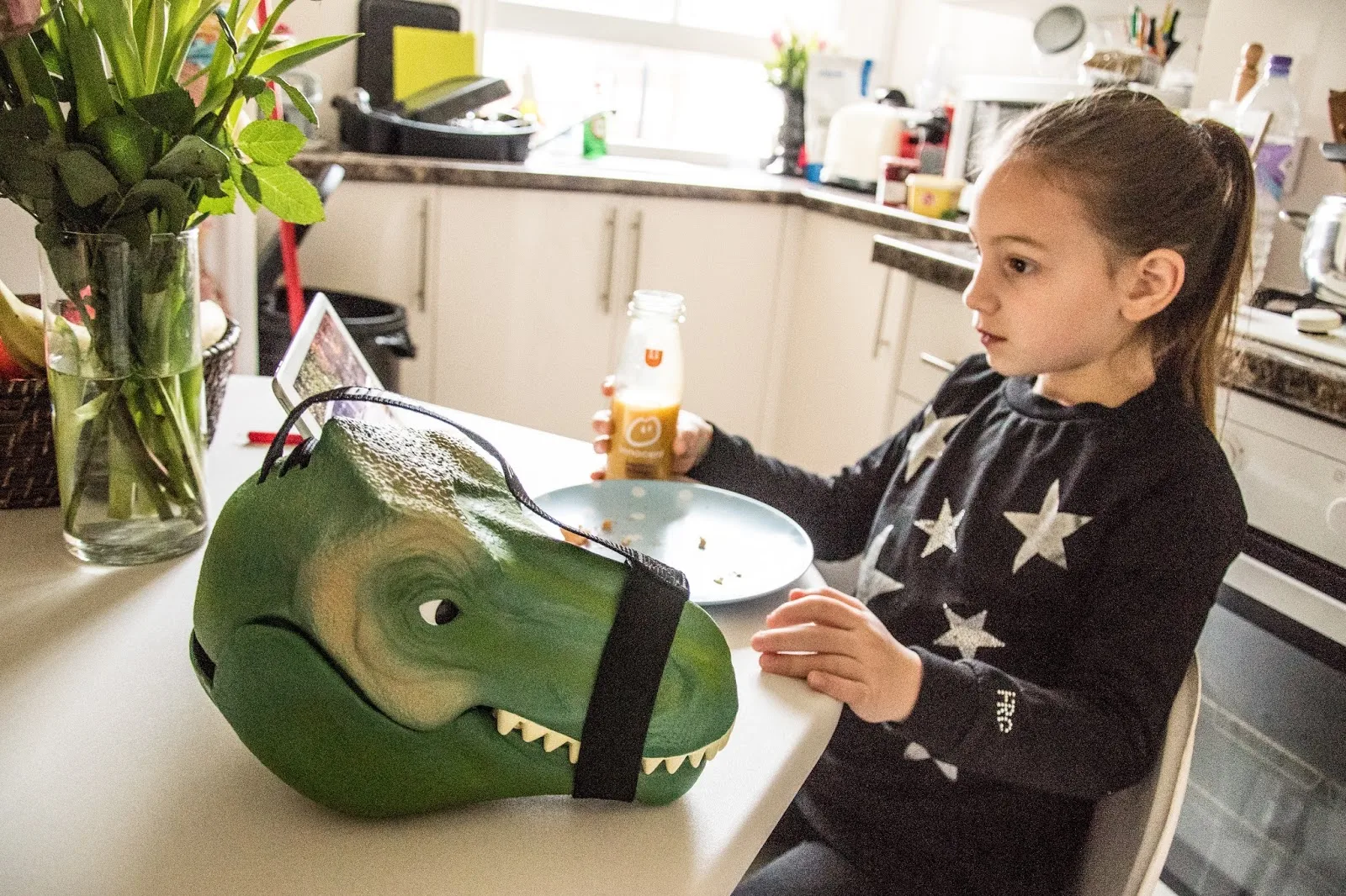 Wer so richtig im Kindergarten, in der Schule oder bei der Arbeit auffallen möchte, der kommt nicht um diese T-Rex Frühstücksdose vorbei. Der T-Rex Kopf mit dem weit aufgerissenem Maul, nimmt das Essen auf und lässt es sicher verstaut transportieren. Dabei wird dem T-Rex einfach ein Maulkorb angelegt und die Klappe ist geschlossen. Als extravagante Handtasche ist der Dino-Schädel sicher auch zu gebrauchen, wenn auch nicht ganz so praktisch - dafür umso auffälliger.Round up all your ROAR-some stuff!